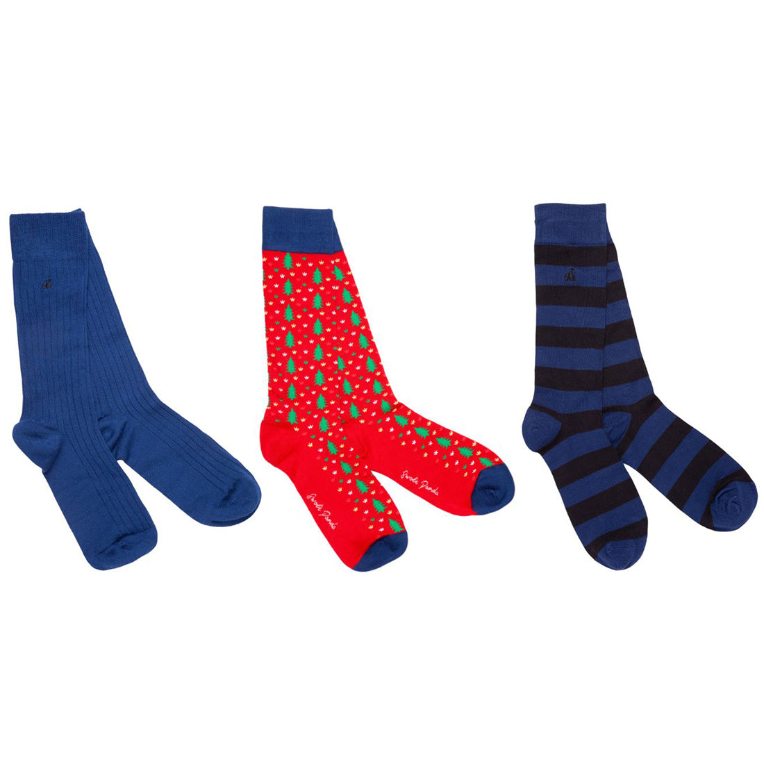 Are you looking for a unique present? Treat yourself or somebody special to this luxury gift box filled with three pairs of our bamboo socks. One pair each of Charcoal Striped, Red Christmas Trees and Royal Blue Ribbed. Each pair is knitted from our unique bamboo blend offering the subtle touch of stand out style.