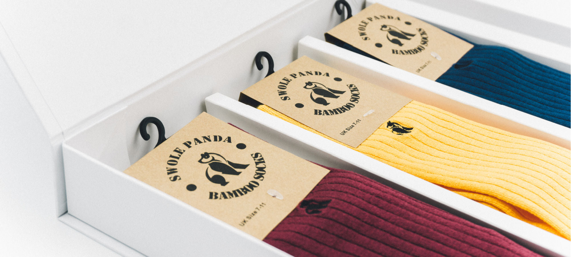 Customization options are also available with Swole Panda. Order the bamboo sock gift box, and we’ll be able to provide custom packaging.