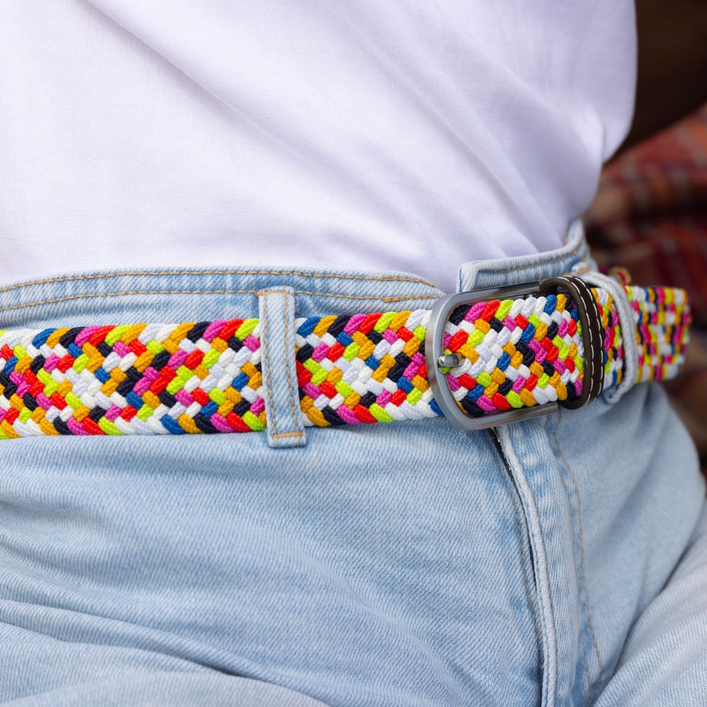 Generally, the elastic belt for men comes in two forms - elastic cords (which are usually braided) and webbing (which could be woven or knitted). The elastic materials themselves are usually made of rubber, although you could find some adjustable belts for men that have materials like polyester, nylon, or cotton.