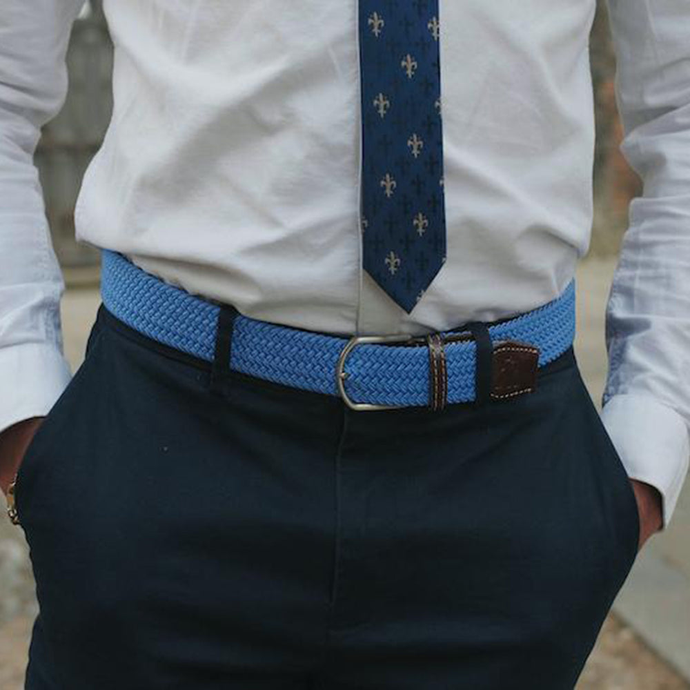 Also known as a stretch belt, the elastic waist belt is a variation of traditional belts. The only major difference here is that, as its name suggests, the elastic waist belt comes with stretchy elastic material. This makes them more versatile and ideal for any man looking for adjustable belts.