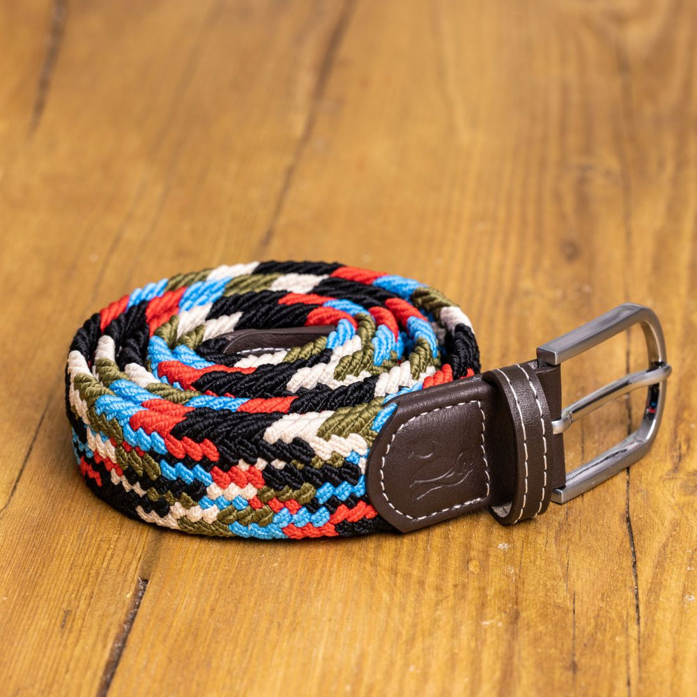 Also known as braided belts, the woven stretch belt is an extension of traditional belts. They are unique because they come with intricate webbing designs. Some men's braided belt options come with elastic straps and materials, although you can also find leather options.