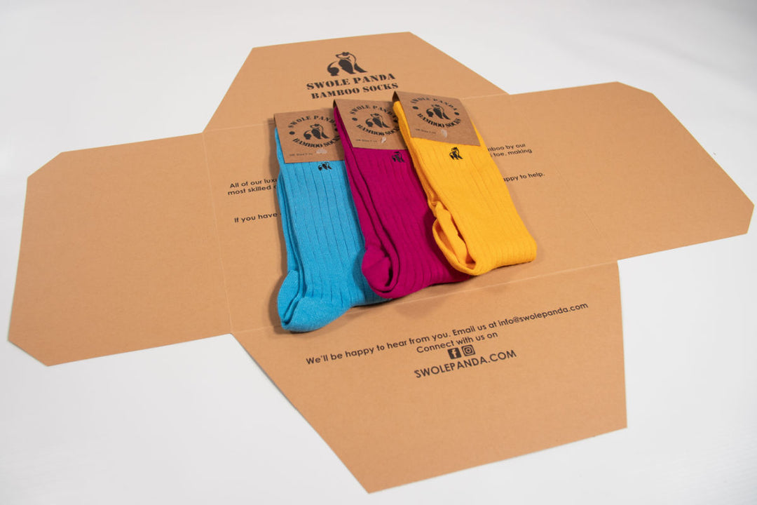 Our socks are 75% Moso Bamboo Viscose, 22% Polyamide on the heel and toe for durability and 3% Elastane for ultimate comfort, fit and feel. Disclaimer: These are authentic Swole Panda Bamboo socks, designed by a small independent team in the UK.