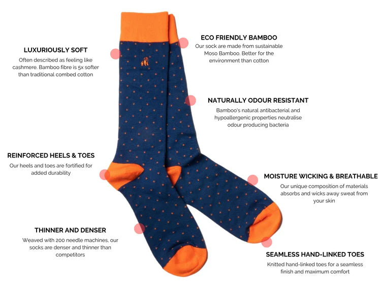 Not only do our socks look great, but realise that these are the highest quality, longest lasting and sustainable pair of bamboo socks ever made, which is why we have been featured in GQ, Huffpost, The Times, Forbes & more. Bamboo is incredibly strong for it's weight, which allows you to wear your socks actively without worrying about them wearing through.